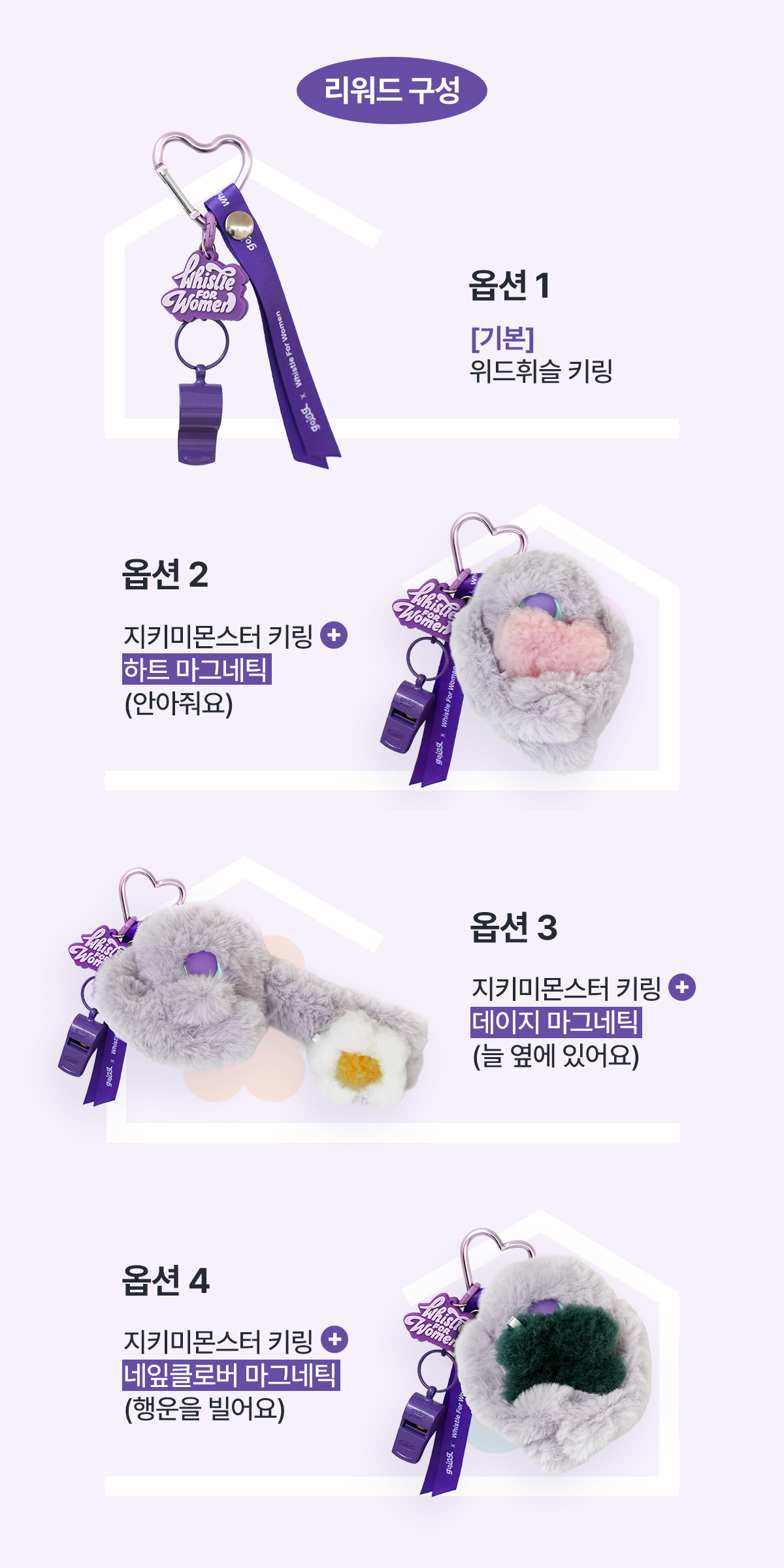 위드휘슬 키링과 지키미 몬스터 키링를 통해, 누군가의 어두운 밤을 밝히는 빛이 되어주세요.